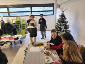 Les élèves de 3e LCE (Mme LEGROS) et SI (M.TAYLAN) ont relevé le défi d’un concours Top Chef en espagnol et en anglais ! À travers la réalisation et la présentation d’un dessert du monde hispanique ou anglophone sur le thème de Noël, ils ont mis à l’honneur à la fois leurs talents culinaires et linguistiques.